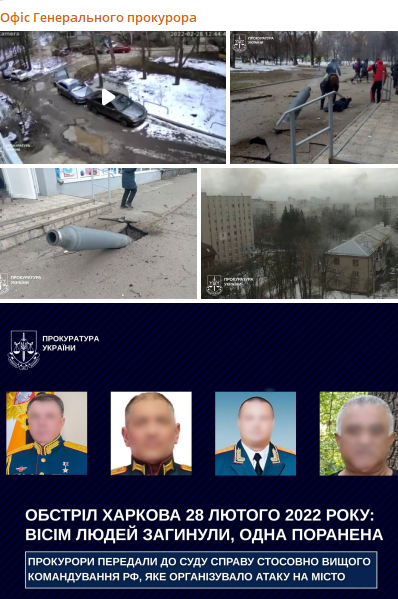 В Офісі Генпрокурора нагадали, що обстріл стався 28 лютого 2022 року. Тоді росіяни поцілили по цивільних об’єктах Шевченківського району Харкова.