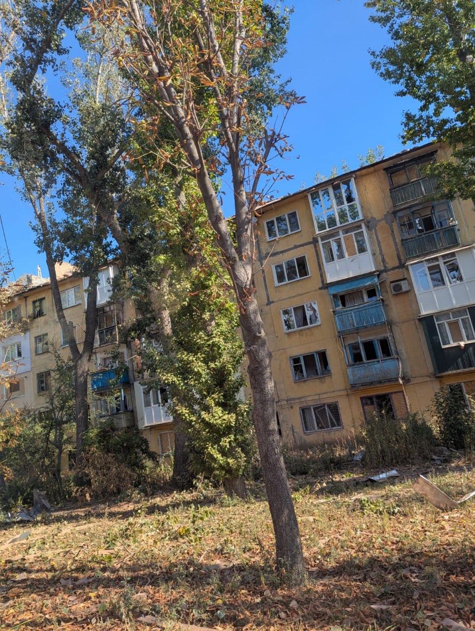 У результаті авіаударів керованими авіабомбами ФАБ-250 було пошкоджено фасади багатоквартирних будинків.