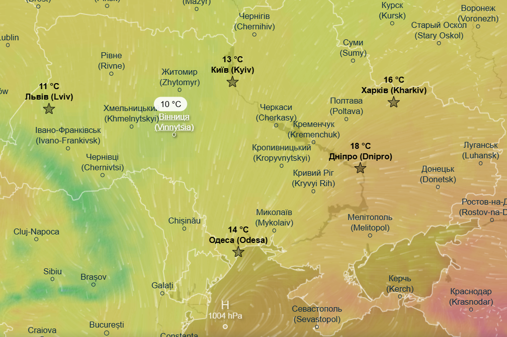 У вівторок, 7 жовтня, в західних, північних та центральних областях України очікується зниження температури повітря - денний максимум в цій частині країни складе від +11 до +14 градусів, в південних областях та на сході очікуються майже літні +20...+21 градусів.