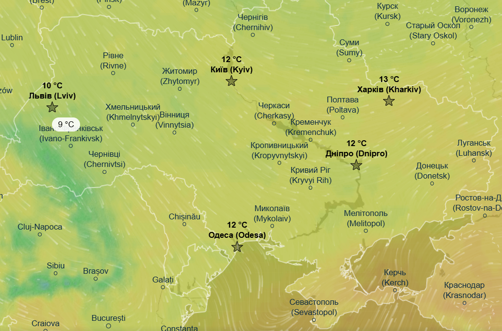 У четвер, 9 жовтня, в Україні дещо потепліє, вдень очікується комфортна погода з максимумом +13... +15 градусів на більшій території нашої країни. При цьому на Львівщині, Волині, Вінниччині, Харківщині та Дніпропетровщині буде прохолодніше - в межах +9...+11 градусів через дощі та зливи, які накриють ці регіони впродовж дня.