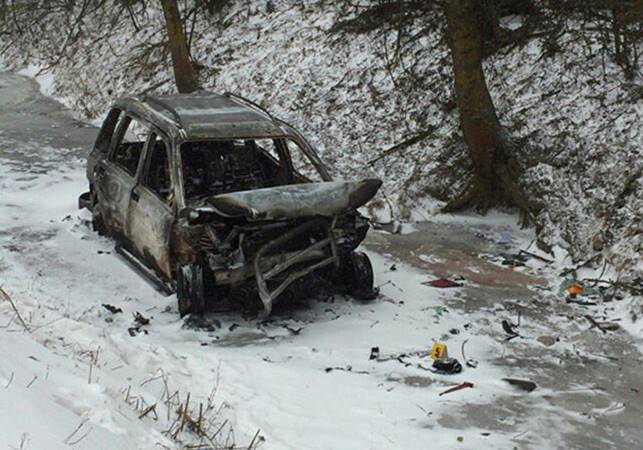 Хлопець з дівчиною поверталися додому від родичів, де святкували Різдво. Машина вигоріла так сильно, що її марку вдалося встановити тільки за допомогою криміналістів.