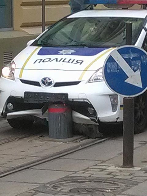 У Львові автомобіль поліції скоїв наїзд на болард (пристрій, що використовується для обмеження в'їзду транспорту).