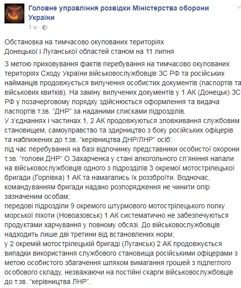 Про це повідомляє Головне управління розвідки Міноборони України на своїй сторінці в Facebook.