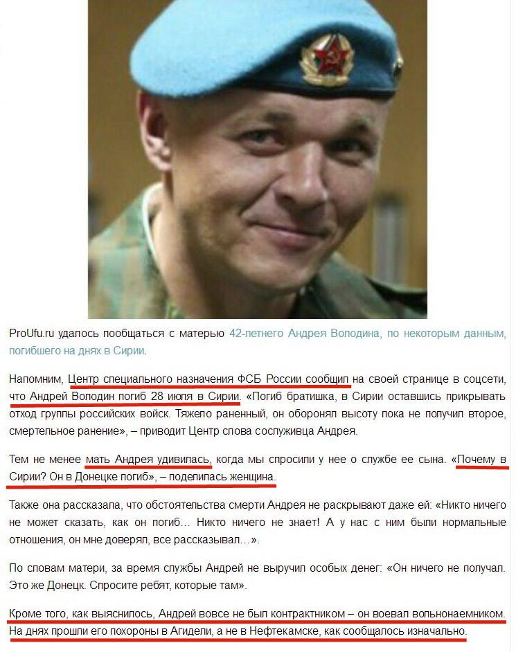 Відзначається, що Центр спеціального призначення ФСБ Росії повідомив на своїй сторінці в соцмережі, що Андрій Володін загинув 28 липня в Сирії.