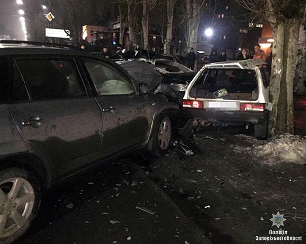 "19 січня близько 21:40 на проспекті 50-річчя Перемоги у Мелітополі зіткнулися два транспортних засоби – "Toyota RAV4" і "Toyota Camry". Після чого автомобілі відкинуло на припарковані неподалік автомобілі: "ВАЗ-2108", "Daewoo Espero" і "Opel", які отримали механічні пошкодження", - йдеться в повідомленні.
