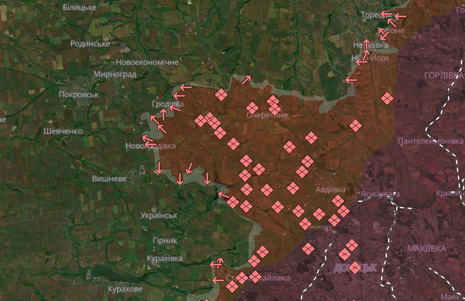 Генштаб ЗСУ у зведенні 20 вересня повідомив, що на фронті за добу відбулося 165 бойових зіткнень, зокрема 33 штурми на Новопавлівському напрямку та 19 російських атак у районі Торецька. Найбільше боїв фіксується на Покровському напрямку — 50 за добу.