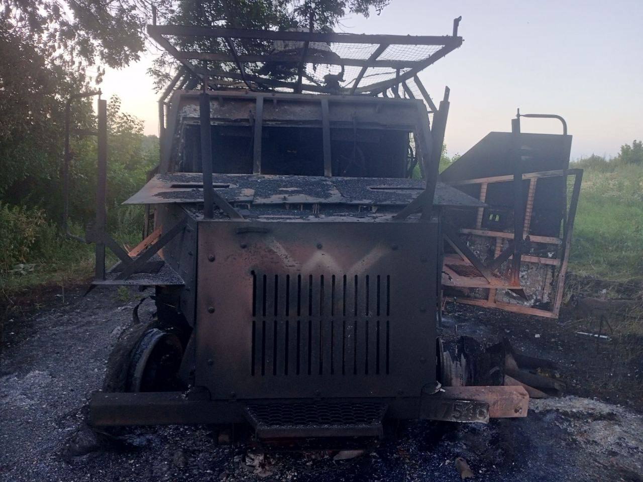 Військова техніка була "модифікована російськими добровольцями" перед тим, як її "було відправлено до України і остаточно втрачено там", пише OSINT-дослідник. За наявною інформацією, росіяни наварили на машину додаткову броню, однак це не вберегло її від знищення.