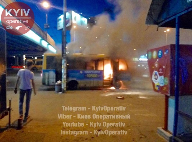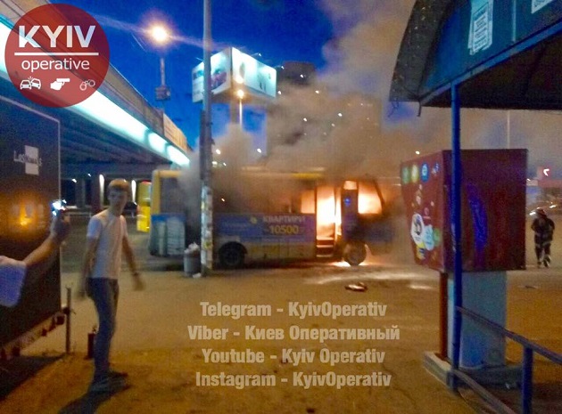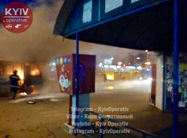 Біля станції метро Харківська в Києві загорівся маршрутний автобус.