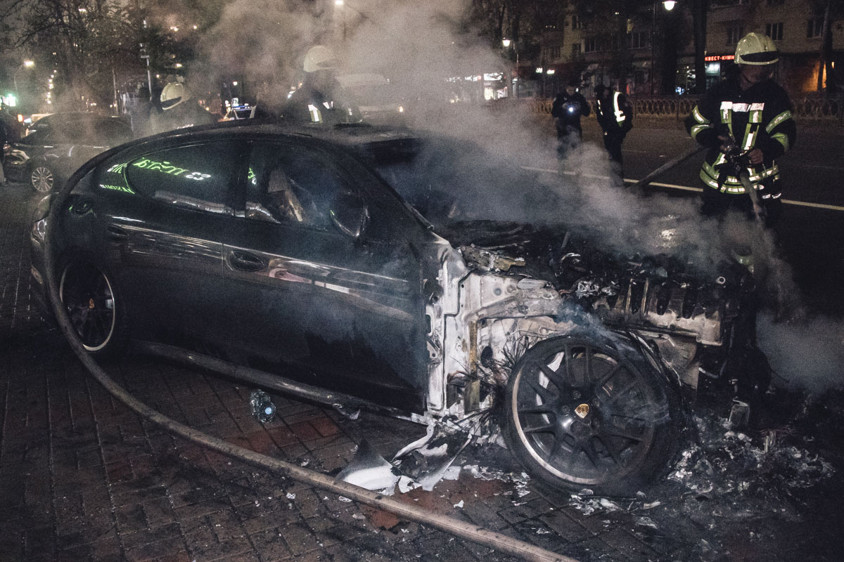 15 жовтня в столиці на бульварі Лесі Українки згорів автомобіль Porsche Panamera.