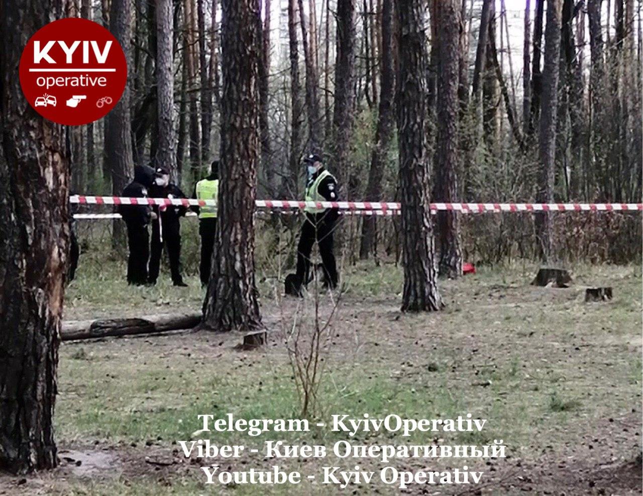 "Жахливу знахідку сьогодні виявлено в лісі на Виноградарі (Гонгадзе). Замотані в пакет залишки чоловіка знайшли прямо посеред галявини в лісі", - підписані опубліковані знімки.