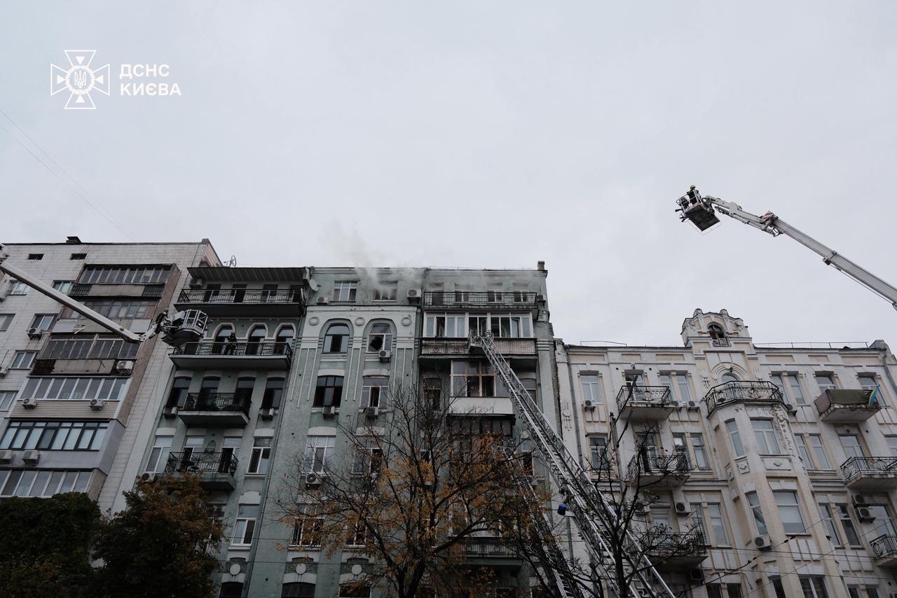У Києві понад сотня рятувальників продовжують гасити масштабну пожежу, яка спалахнула ще ввечері 17 жовтня у квартирі житлової багатоповерхівки на Печерську.