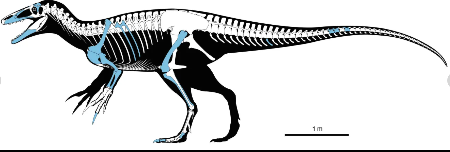 Як міг виглядати Joaquinraptor casali, виявлені кістки позначені синім кольором