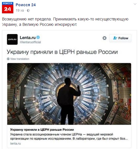У мережі уїдливо висловилися у зв'язку з тим, що Україна стала асоційованим членом Європейської організації з ядерних досліджень (ЦЕРН) раніше Росії.