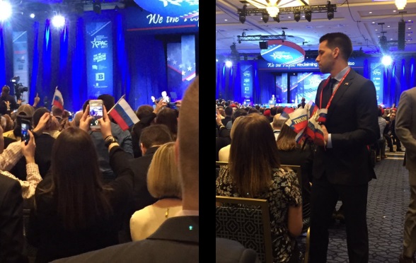 На конференції консервативних політичних дій, участь у якій брав президент США Дональд Трамп, активісти роздали близько тисячі російських триколорів.