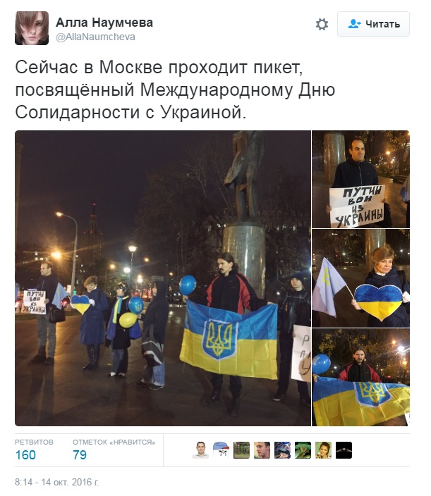 У соціальних мережах значну популярність набрали фотографії проукраїнського мітингу "Стоп, Путін! Стоп війна!" в Москві.