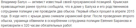 Даний інцидент стався вранці 8 грудня. Перед затриманням силовики провели чотиригодинний обшук в будинку Балуха, виявивши на горищі 90 патронів і кілька тротилових шашок. За словами родичів активіста, боєприпаси підкинули самі співробітники ФСБ під час обшуку.