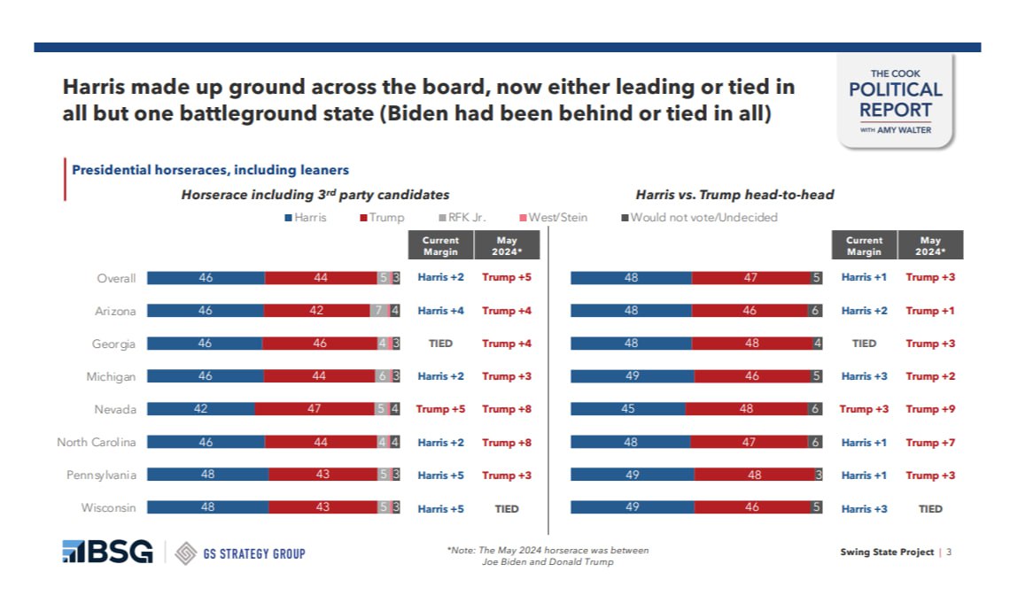 Про це свідчить опитування The Cook Political Report Swing State Project.