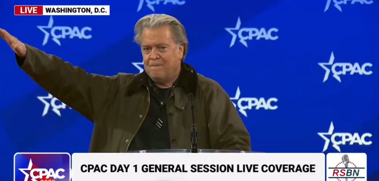 У четвер, 20 лютого, на Конференції консервативних політичних дій (CPAC) колишній радник Дональда Трампа Стів Беннон зробив той самий жест, що його раніше робив американський мільярдер Ілон Маск на інавгурації Трампа.