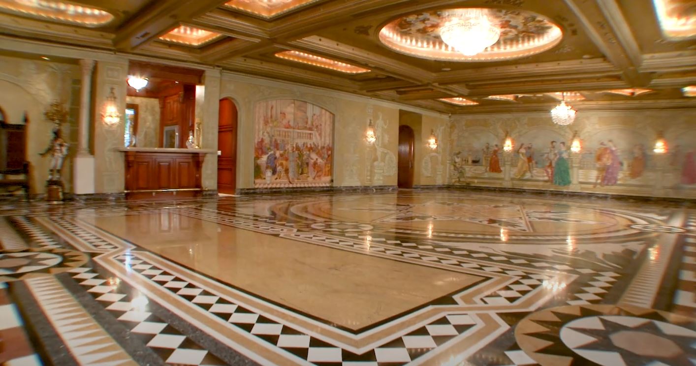 Як пояснює подружжя Брозе (ідея гаража-бального залу була їхньою) у відео, найскладніша частина будівництва цього мармурового експоната - зробити мармурову підлогу. Це найбільший шматок мармурової мозаїки в приватній резиденції, і на її створення вручну пішло два роки. Вона створена з розписаними вручну фресками в стилі епохи Відродження, позолотою на стелі, кришталевими люстрами, відповідними творами мистецтва та гідравлічними дверима.