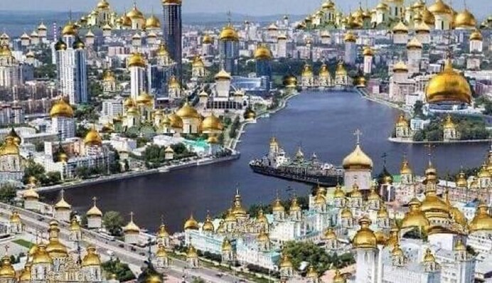 Також автор публікації запостив картинку з Києвом, де на всіх об'єктах розкішні золоті бані, що має продемонструвати красу і велич України.