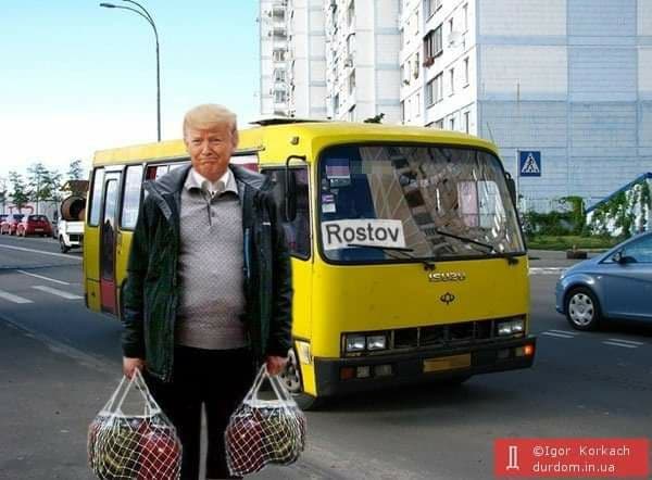 Зокрема, автори жартів порівнюють президента США Дональда Трампа з президентом-утікачем Януковичем і прогнозують їхню зустріч в Ростові. Трамп також зображений в образі олімпійського ведмедя Мішки, з яким свого часу пафосно прощалися в Москві. Не оминули увагою жартівники і першу леді Меланію Трамп. Її фото супроводжується написом "Нарешті вільна. Спасибі, Джо".