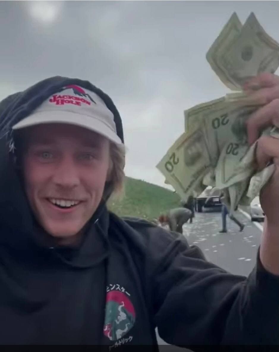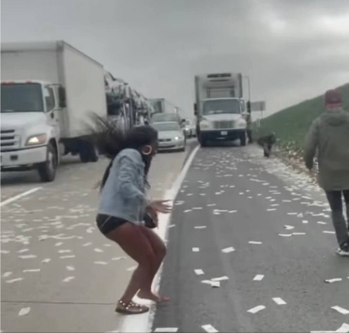 Під час того, як гроші зі службової машини опинилися на дорозі, рух було паралізовано. Багато несумлінних людей зупинялися і почали збирати їх.