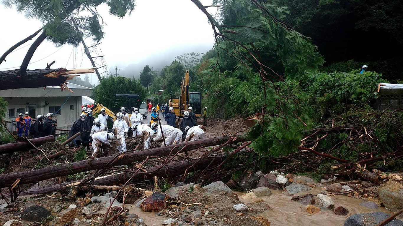 У префектурі Нагасакі відбулися зсуви, один з яких зруйнував не менше двох будинків, і забрав життя 59-річної Фуміе Морі. Чоловік і дочка загиблої зникли безвісти.