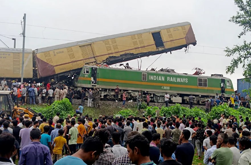 В повідомленні йдеться про те, що в понеділок, 17 червня близько 08:45 за місцевим часом (6:15 за київським часом), в Індії поблизу Нью-Джалпайгурі зіткнулися швидкісний та товарний потяги, удар був настільки потужним, що виштовхнув вагон потяга з колії, піднявши догори. На фотографії можна помітити, що вагон завис у повітрі на висоті кількох метрів.