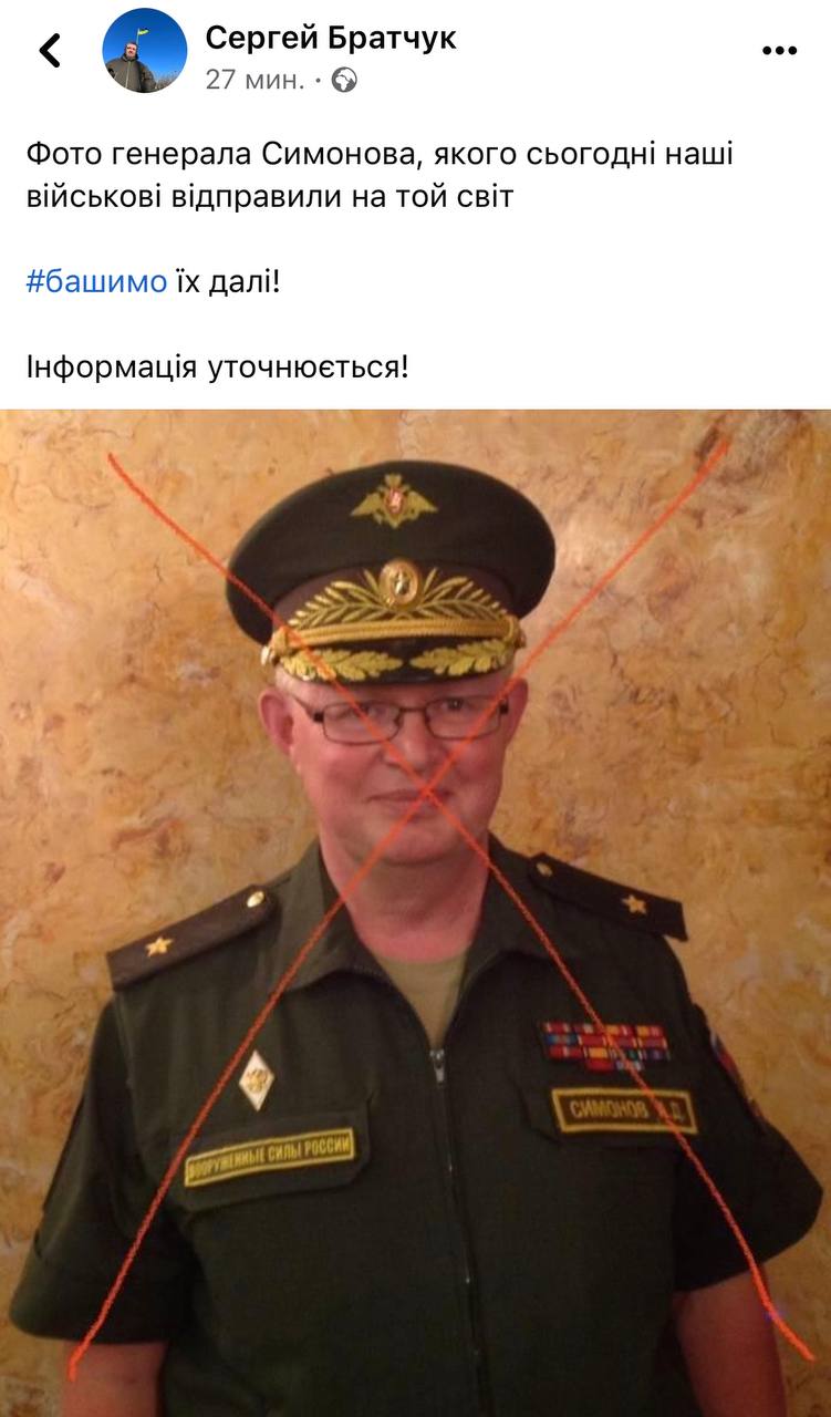 22:15 Генерал російської армії Сімонов. Сьогодні його ліквідували ЗСУ в районі Ізюма.