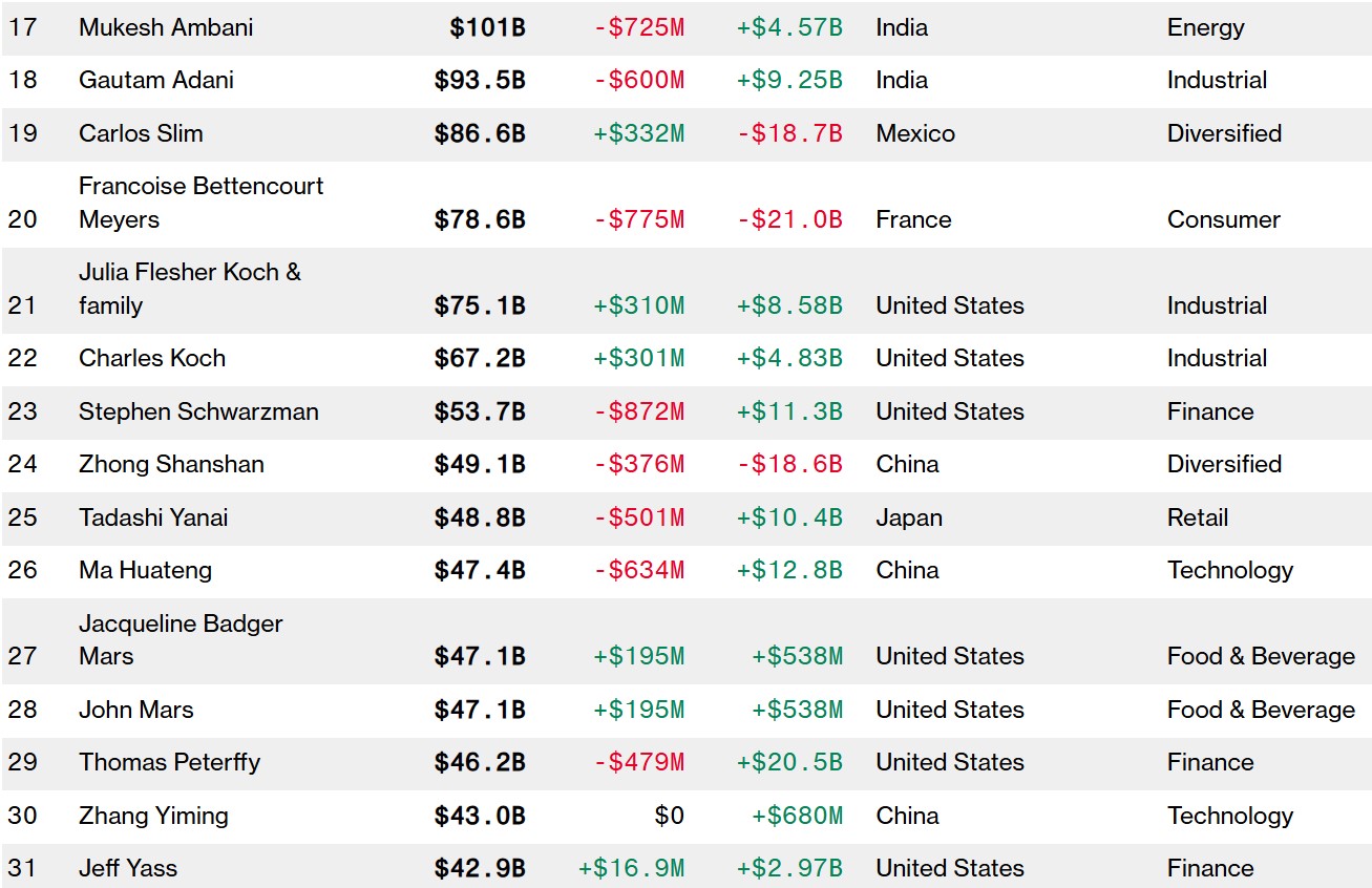 На четвертому - засновник американської корпорації Oracle Ларрі Елісон (181 млрд., +57,6 млрд.).