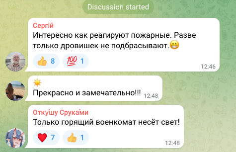 У мережі зазначили, що лише військомат, що горить, "несе світло", і залишили чимало радісних коментарів під відео пожежі.