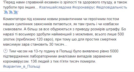 Відзначимо, що в Польщі за останніми даними 5000 підтверджених лабораторними аналізами випадків зараження коронавірусом. При цьому, 136 осіб з тих п'яти тисяч померли.