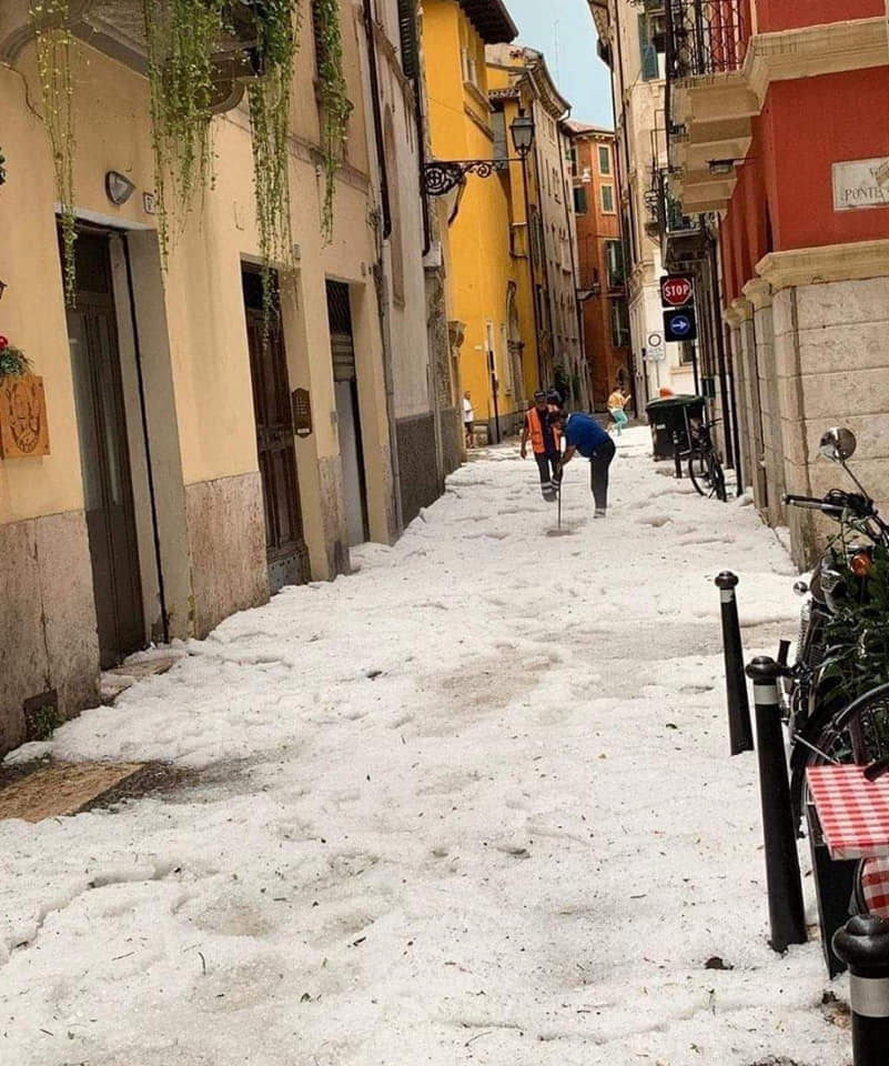 Італійське місто Верона переніс потужний удар стихії, його вулиці буквально засипало градом і залило дощем.