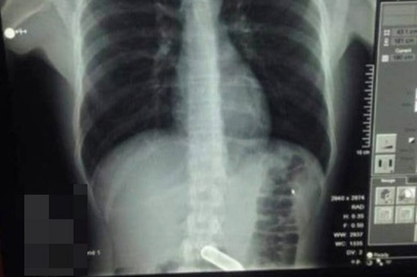 У клініці лікарі повідомили, що ніколи раніше не стикалися з таким випадком. Дослідження показали, що металевий предмет застряг на дні живота пацієнта.