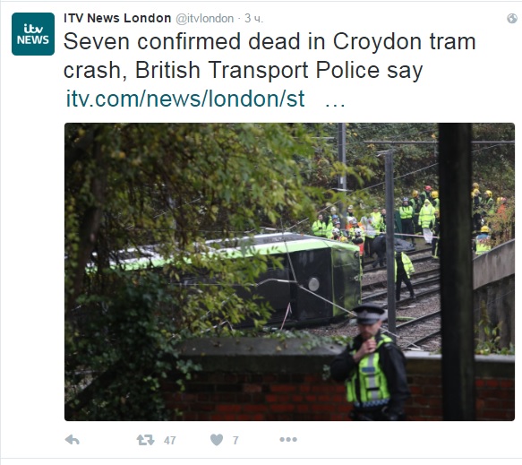 У столиці Великобританії – Лондоні – в результаті аварії трамвая загинули сім осіб і близько 50 були доставлені в лікарню.