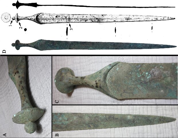Дослідження показало, що рукоять і клинок були виготовлені з різних видів металу, доставленого, по всій видимості, з Андалусії (автономна область Іспанії), і з'єднані заклепками. Вчені кажуть, що меч не використовувався в бою і був скоріше частиною парадної амуніції або річчю, яка демонструє статус власника.