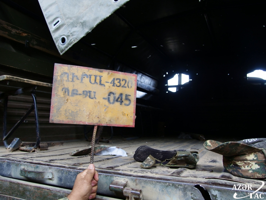 Відзначається, що азербайджанці захопили кинутий вірменами під час втечі "Урал". У салоні залишилася шапка вірменського солдата. Техніка в робочому стані. Це вже не перший автомобіль, кинутий вірменами. Раніше азербайджанці захопили ще один УРАЛ і УАЗ.
