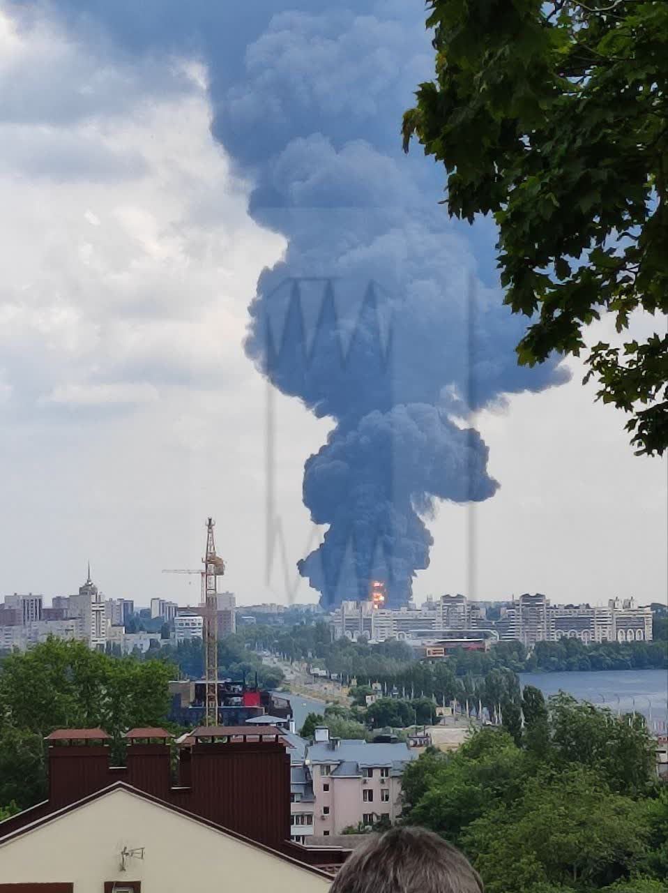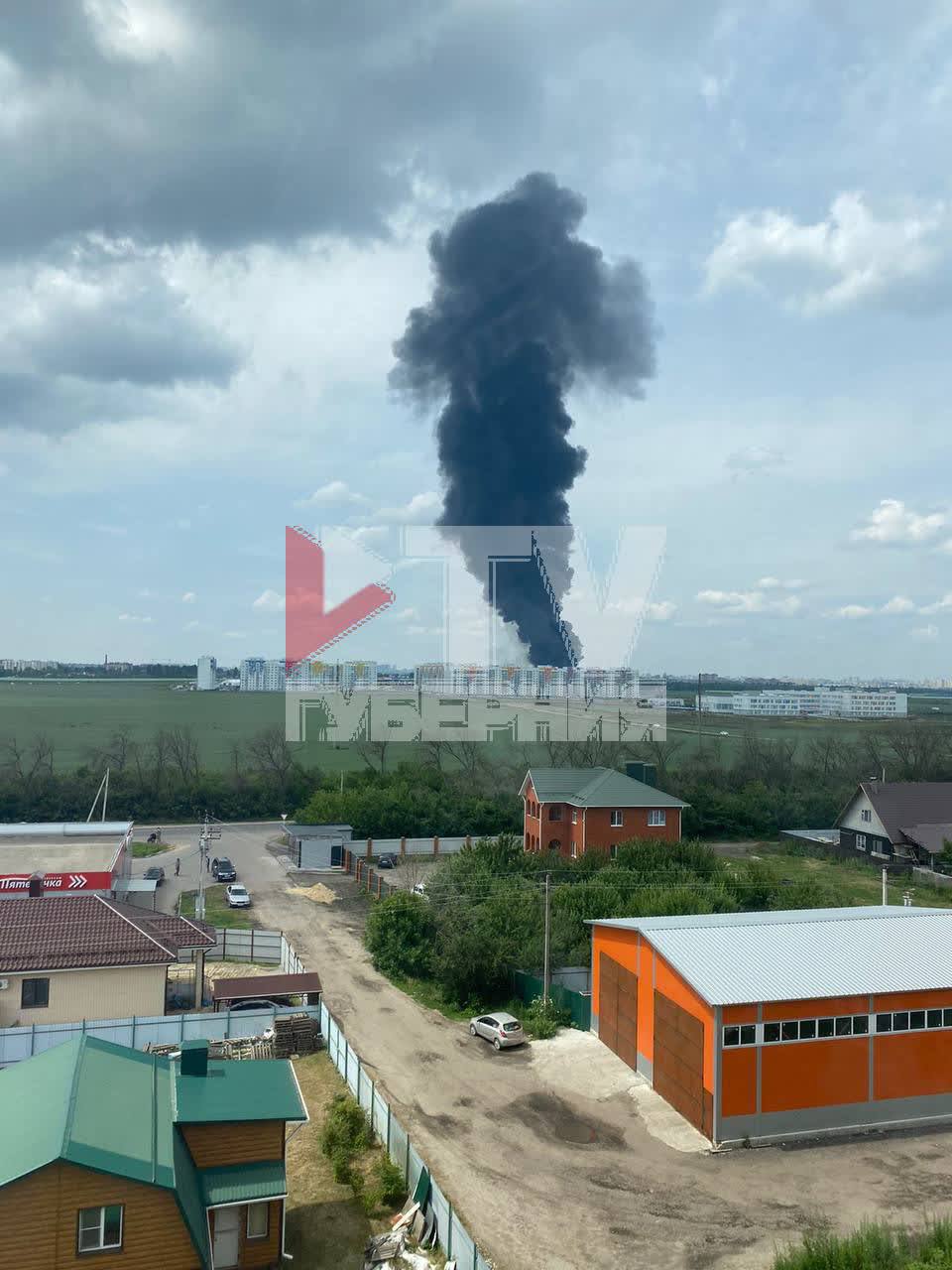 У російському Воронєжі горить нафтобаза неподалік Ленінградської, яку захопили найманці ПВК "Вагнера".