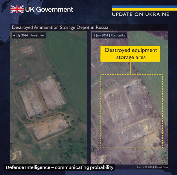 "Ця атака призвела до майже повного знищення боєприпасів і техніки, що зберігалися на відкритих майданчиках, а також будівель, розташованих на об'єкті".