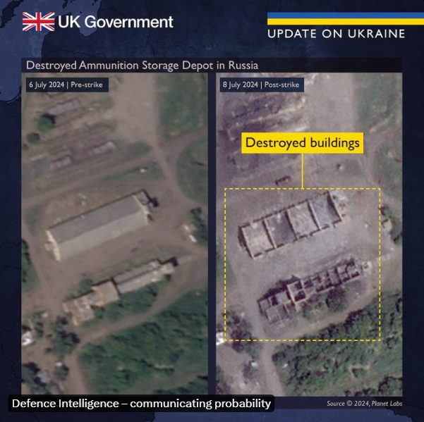Розвідка Великої Британії проаналізувала "бавовну", яка трапилася 7 липня на складі боєприпасів у Воронезькій області внаслідок атаки БпЛА.
