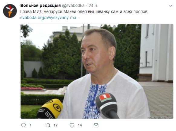 Міністр закордонних справ Білорусі Володимир Макей 25 червня влаштував для дипломатів та їхніх сімей свято на честь "Дня сорочки з вишивкою". Сам міністр і більшість гостей свята були одягнені у вишиванки, які були прикрашені орнаментами з білоруськими мотивами.