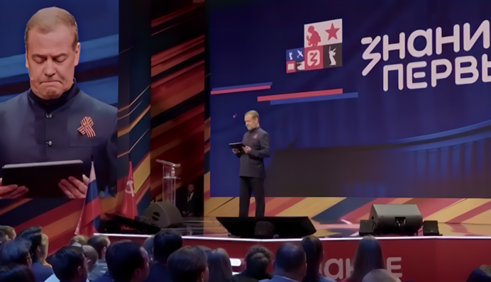 Також ми розповідали про те, що обрані цитати з Telegram-каналу, які показали на великому екрані під час лекції колишнього президента РФ Дмитра Медведєва, вразили російського професора університету Чикаго Костянтина Соніна своєю деградацією.