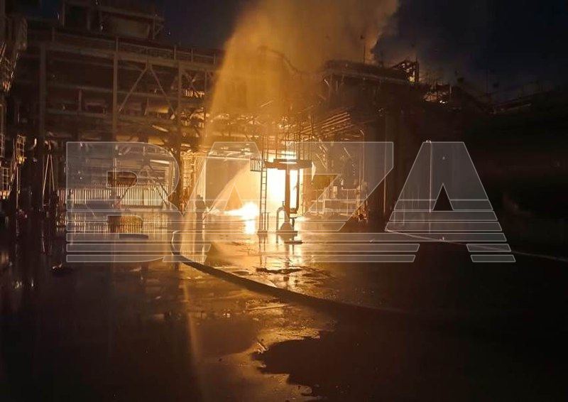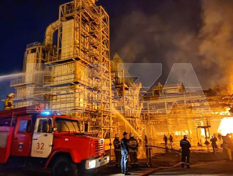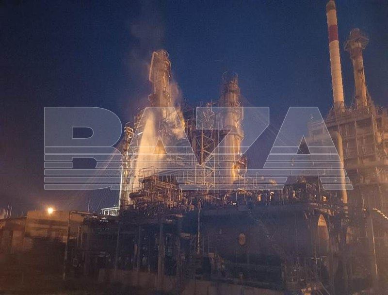 Повідомляється, що після прильоту БПЛА спалахнули дві установки ABT (атмосферно-вакуумна трубчастка).