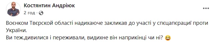 У Мережі з'явилося кумедне відео, де військовий комісар у Тверській області РФ закликає співвітчизників йти на війну з Україною.