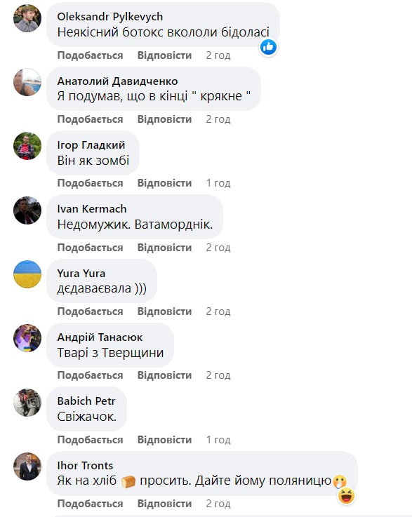 "Де вони цих напівмертвих беруть?", "Чи видихне він нарешті, чи ні?" "Морда імбецила", "Типова особа російського світу", "Він що, з могили виліз?", - так відреагували українці на звернення.