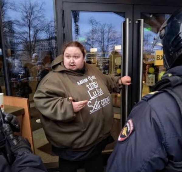 Водночас знайшлась людина, яка почала протестувати проти відходу McDonald's з Росії. Так, у Москві піаніст Лука Затравкін, який є сином російського художника Нікаса Сафронова, прикував себе у знак протесту кайданками до дверей закладу.