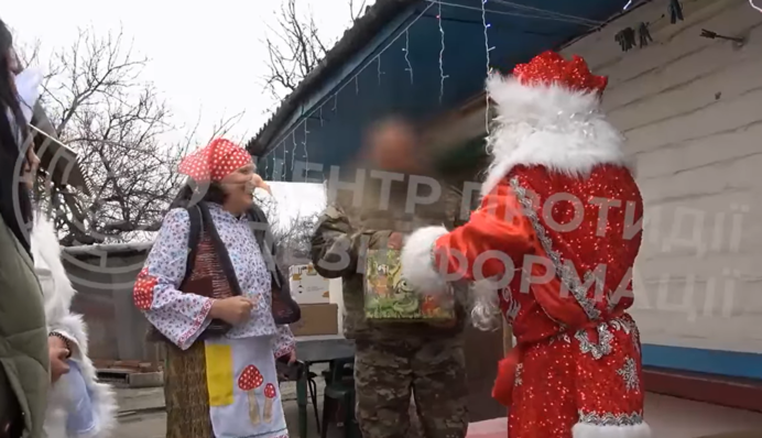 Російські пропагандисти вбралися у костюми та привітали окупантів на фронті із новорічними святами.