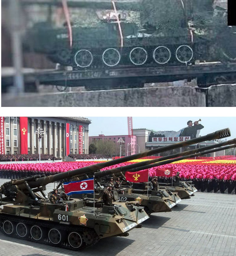 Як пише пропагандистський паблік "Військори російської весни", Росія дійсно отримала 170-мм САУ від КНДР. Він опублікував кадри з нібито їх транспортуванням.