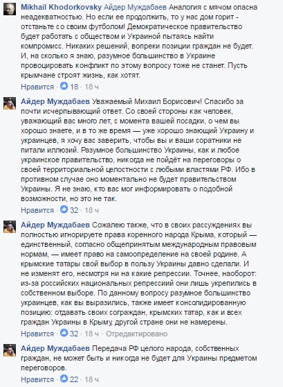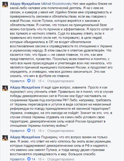 Зокрема, все почалося з коментаря Муждабаева під постом Ходорковського щодо затвердження Руху "Відкрита Росія".