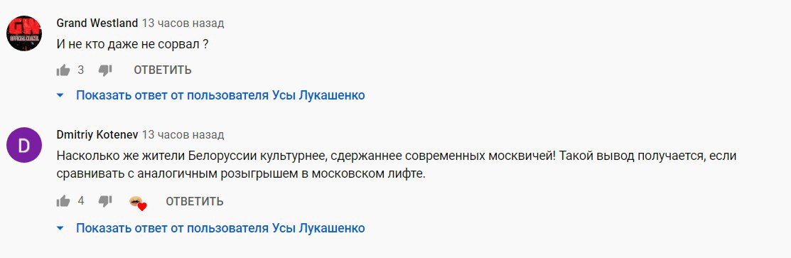 Одні з учасників експеримента посміхалися такого сусідства, інші, навпаки, серйозно поставилися до картини на стіні ліфта. Найбільше поява знімка з Лукашенком в рамці здивувало дітей. Деяких з них дуже цікавило, невже ліфт, це місце, де вішають картини. Одного з жителів найбільше зацікавило, хто той герой, який повісив портрет в ліфті.